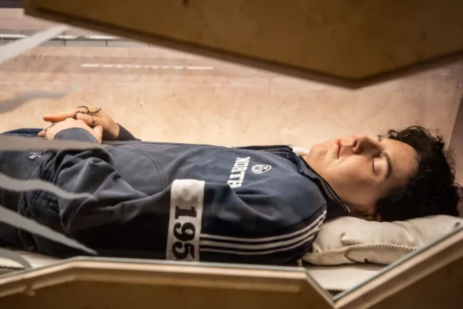 Corpo de Carlo Acutis. Imagem: Minha Biblioteca Católica.