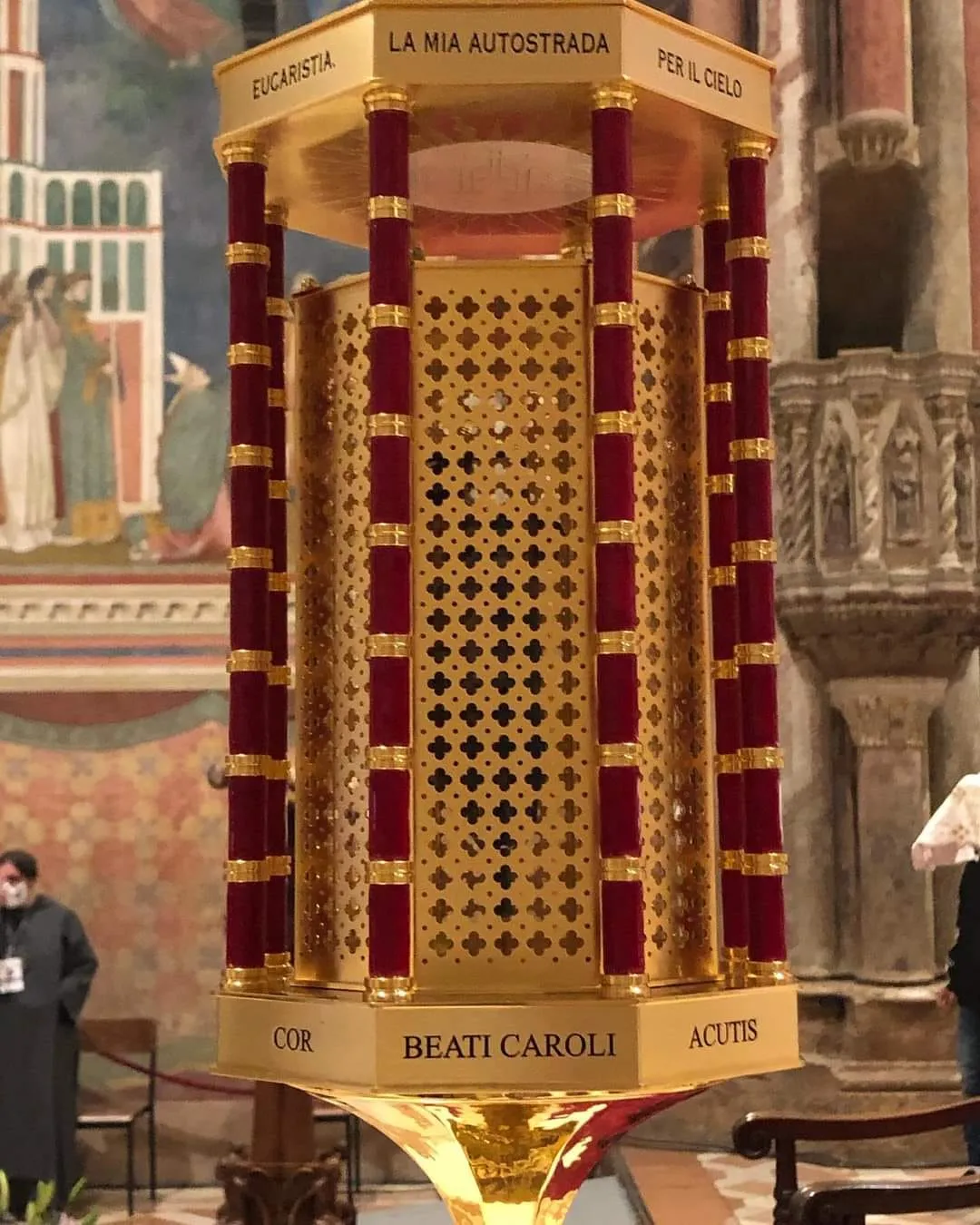 O coração de Carlo Acutis está preservado em um relicário na Igreja de São Francisco, em Assis.