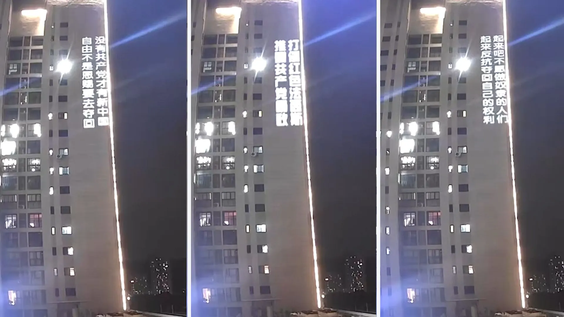 O protesto durou cerca de 50 minutos antes de ser interrompido. Qi Hong posicionou em sua casa um retroprojetor que exibiu frases no prédio da frente: