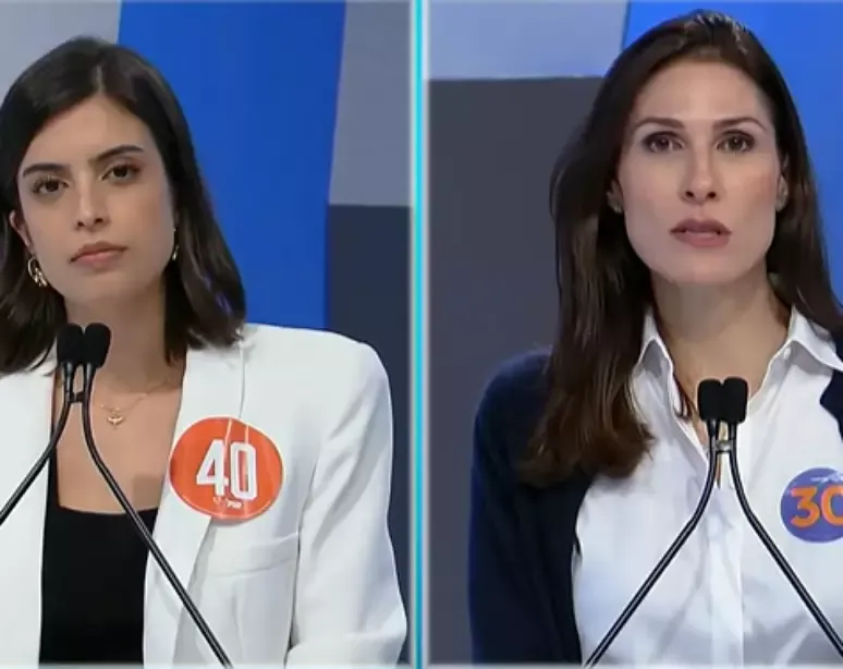 As candidatas Tabata Amaral (PSB) e Marina Helena (NOVO/SP). Imagem: reprodução Youtube UOL.