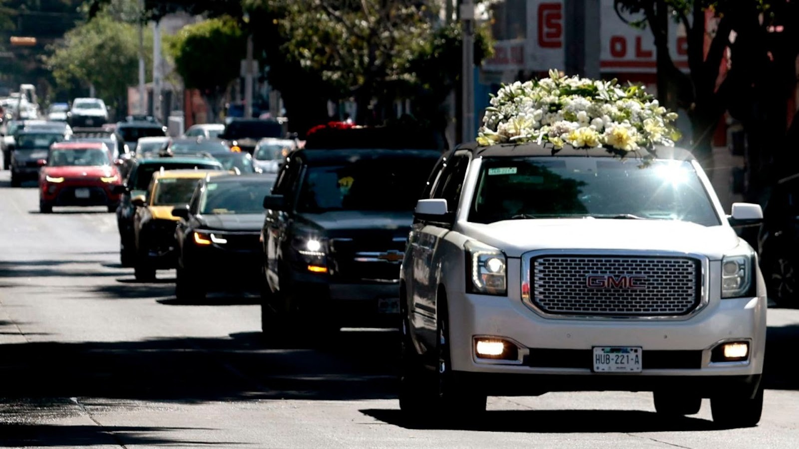 O corpo foi levado em um cortejo de carros para um cemitério de uma cidade próxima a Guadalajara.