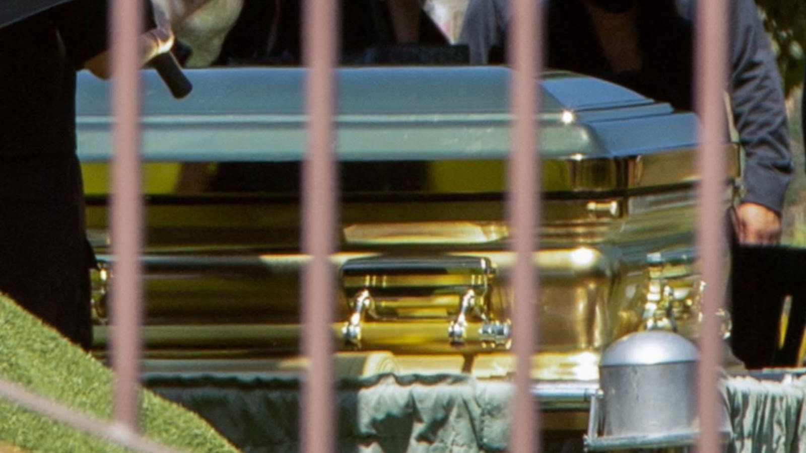 Quando o caixão dourado chegou à capela dentro do cemitério, foi feita uma cerimônia religiosa com as pessoas mais próximas.