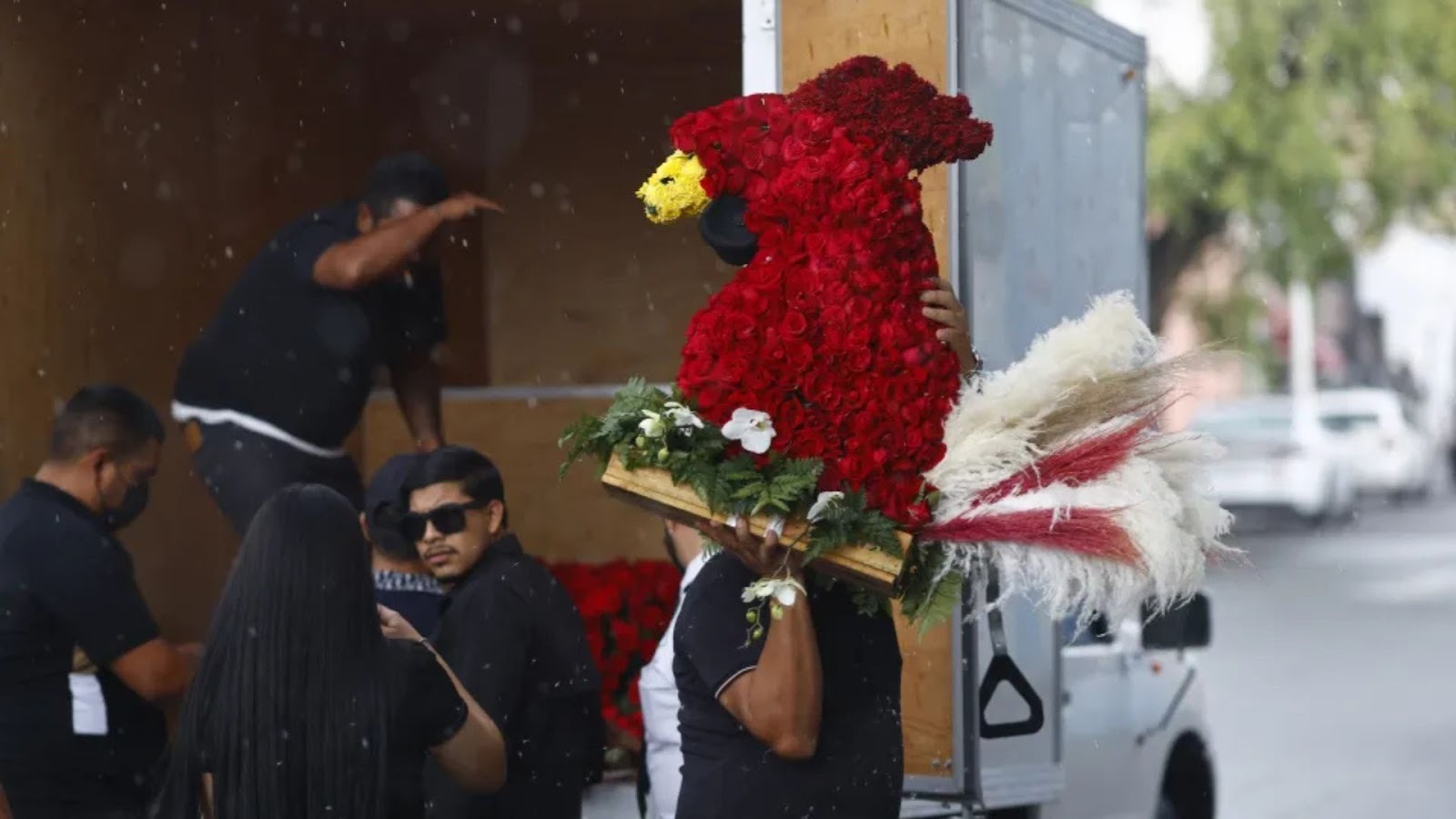 O local estava enfeitado por grandes arranjos de flores enviados anonimamente. Segundo a AFP, foram necessários cinco caminhões para transportar todas as coroas.