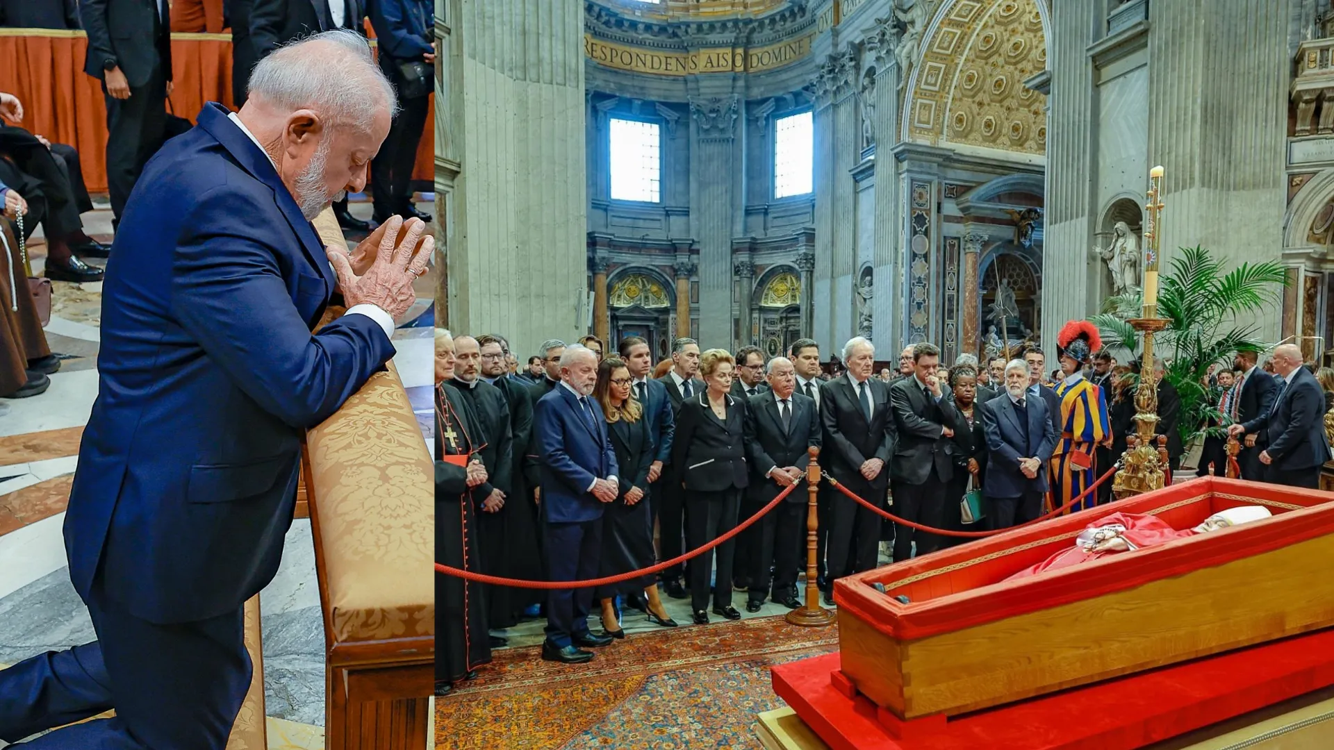 Durante a tarde desta sexta-feira em Roma, a delegação brasileira, liderada pelo presidente Lula, esteve na imponente Basílica de São Pedro. No local, realizaram um ato de homenagem e respeito ao papa.