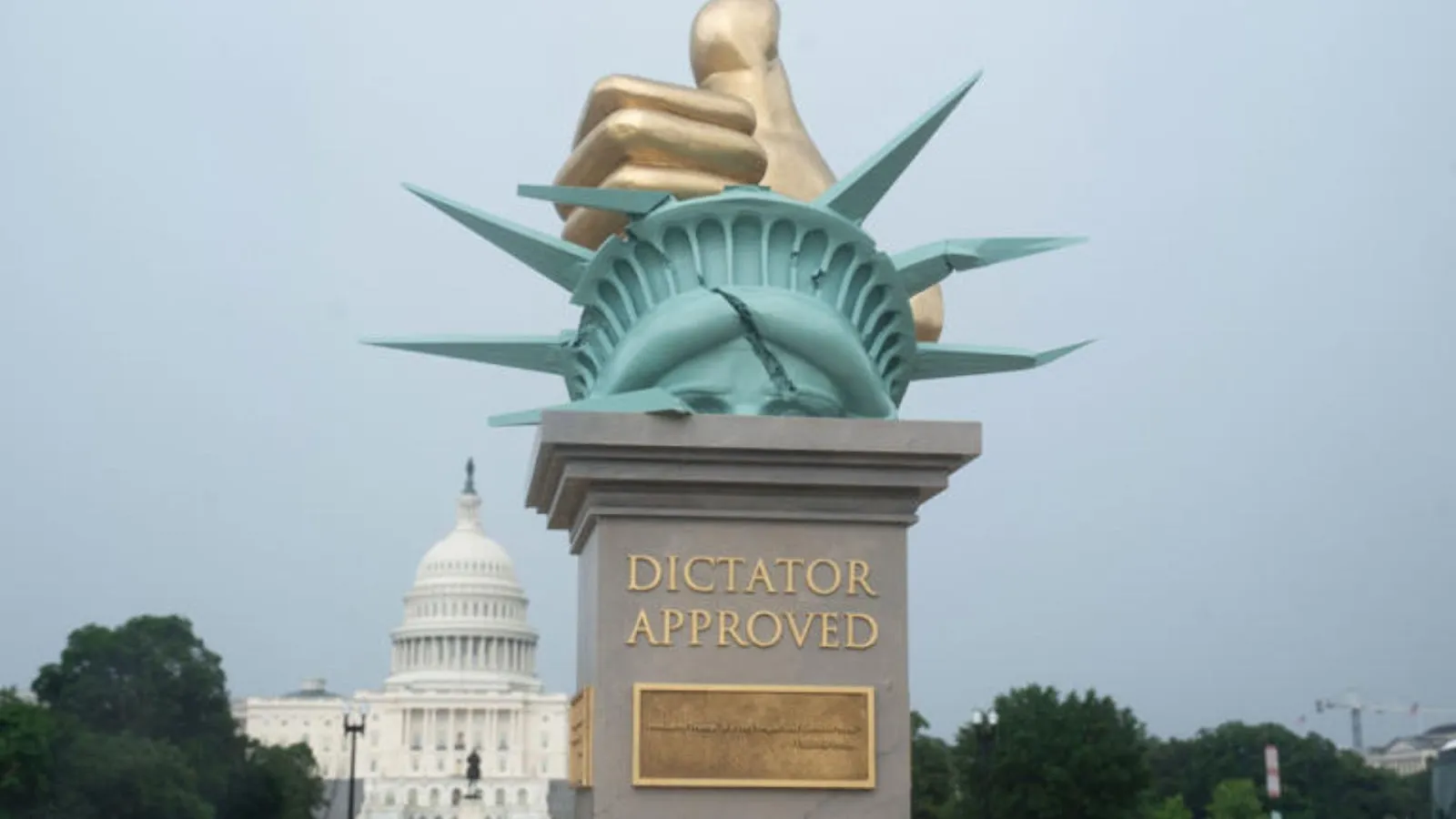 Esse mesmo grupo já instalou a série “Aprovado por Ditadores”, na qual reúnem declarações de apoio a Trump atribuídas a figuras como: