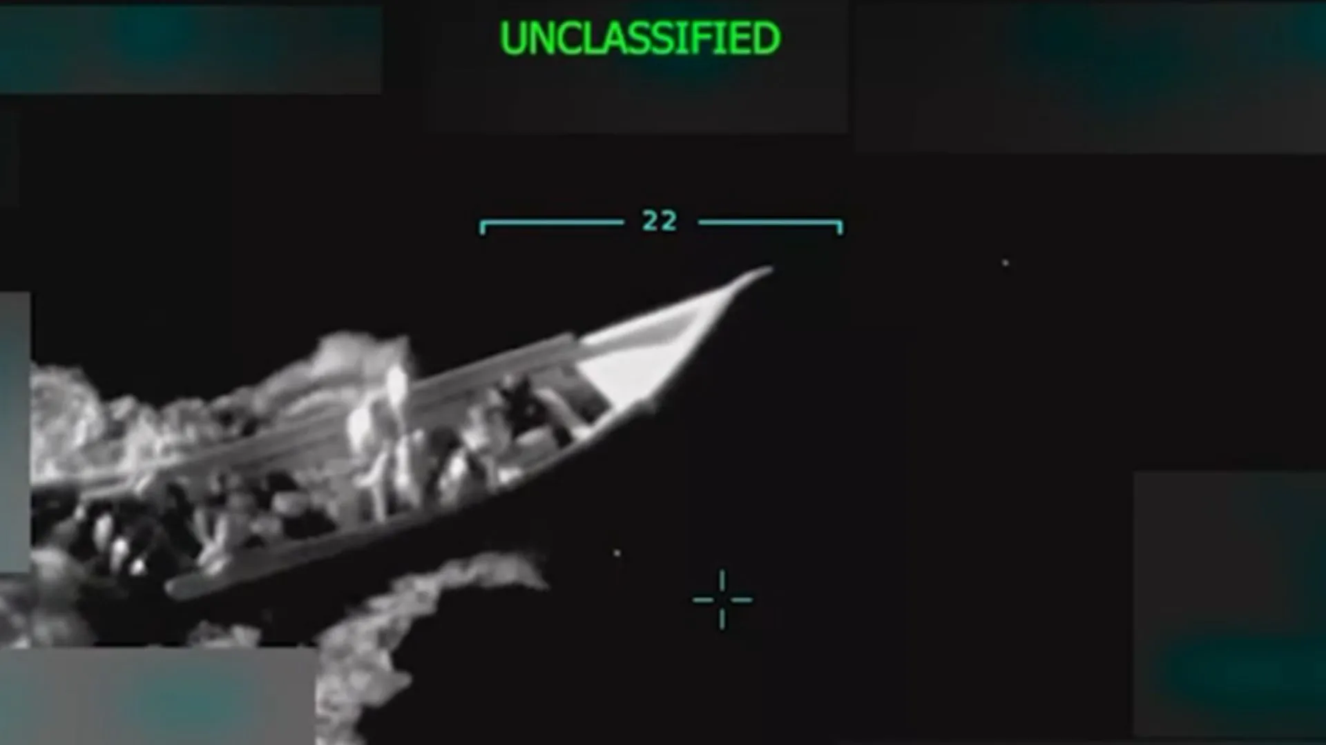Hegseth publicou um vídeo de cerca de 20 segundos que mostra o barco navegando antes da explosão: