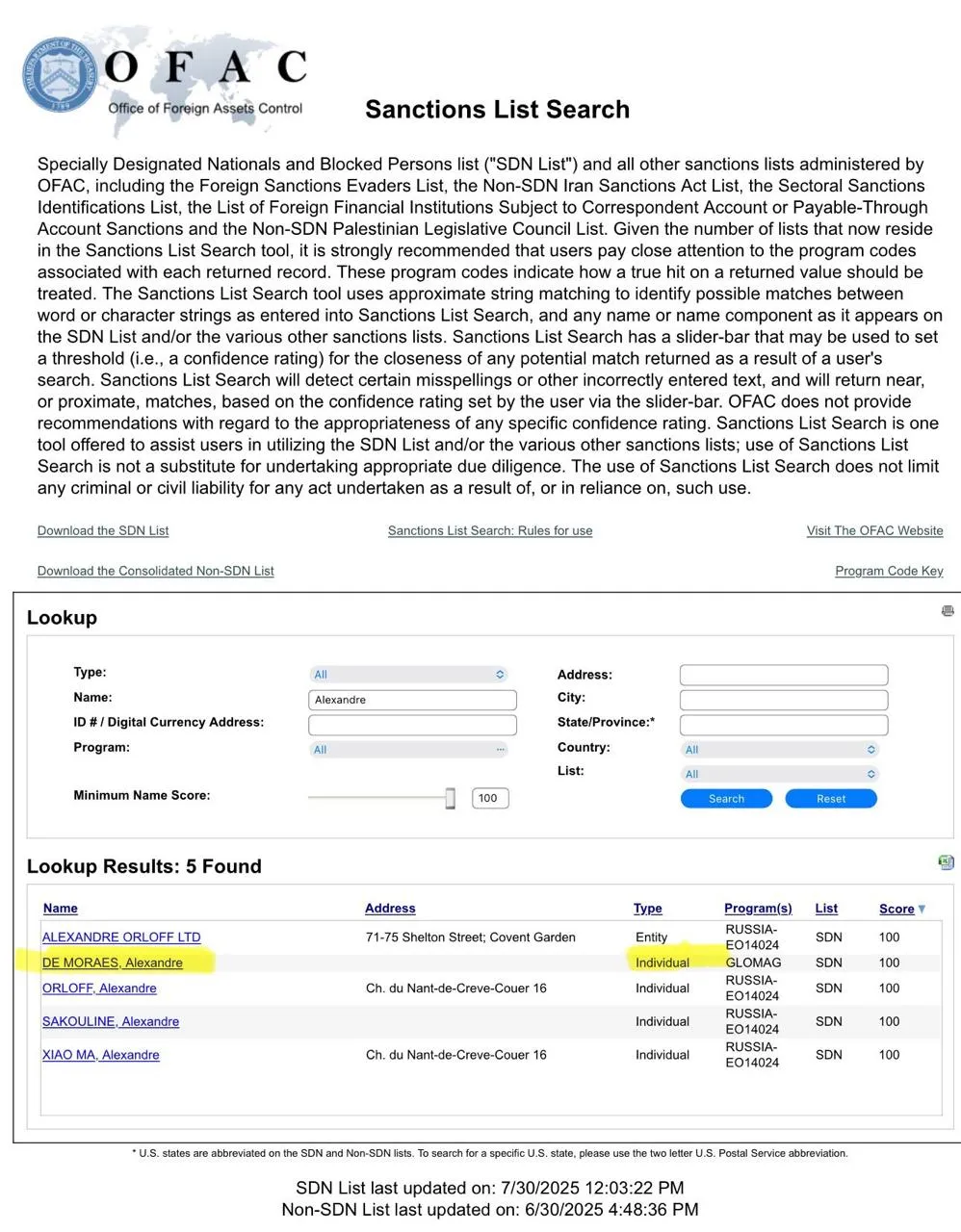 De Moraes é responsável por uma campanha opressiva de censura, detenções arbitrárias que violam os direitos humanos e processos politizados — inclusive contra o ex-presidente Jair Bolsonaro. A ação de hoje deixa claro que o Tesouro continuará a responsabilizar aqueles que ameaçam os interesses dos EUA e as liberdades de nossos cidadãos".