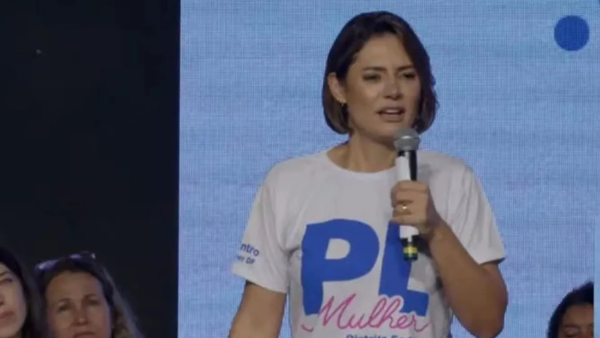 Michelle Bolsonaro leu uma carta aberta para Lula durante um evento do PL Mulher no sábado (12).