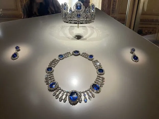 - A tiara do conjunto da Rainha Maria Amélia e da Rainha Hortênsia, feita de safiras do Ceilão e diamantes.