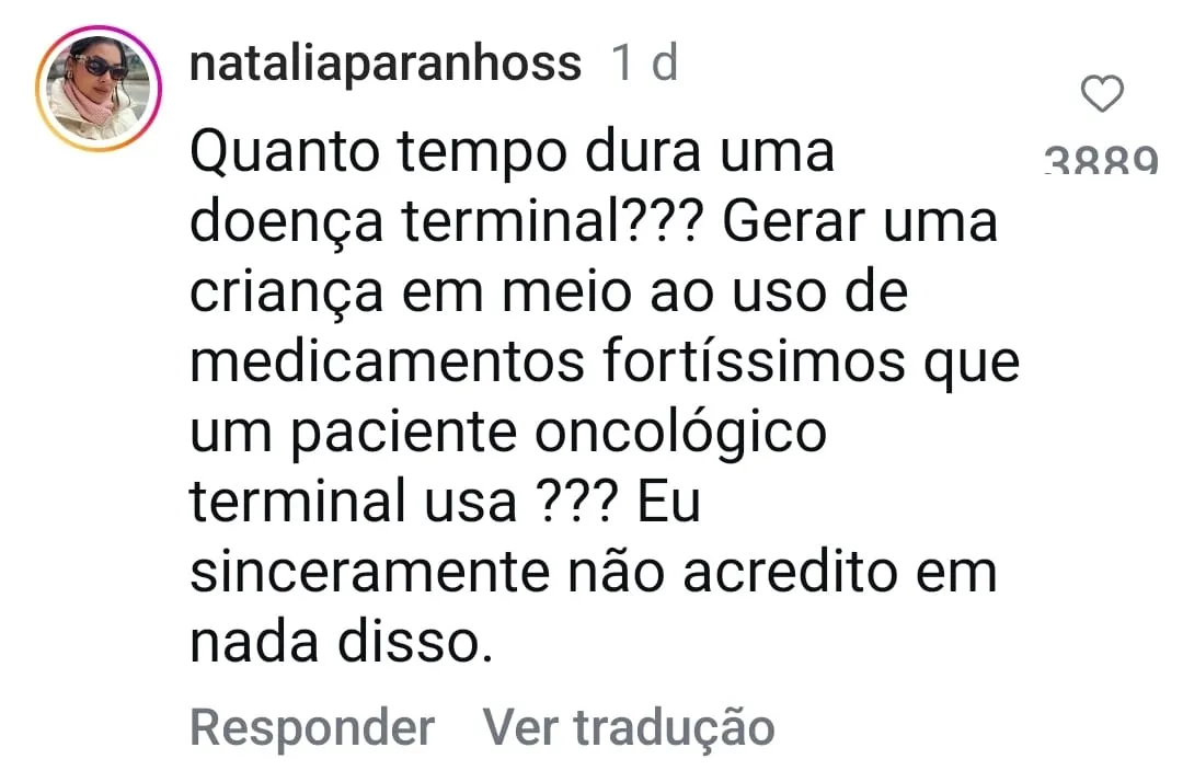 A notícia repercutiu nas redes sociais. Por um lado, algumas pessoas criticaram a moça, afirmando que o bebê ficará sem mãe. Outras a parabenizaram não só pelo bebê, mas por não viver o tempo que tem apenas esperando a morte.