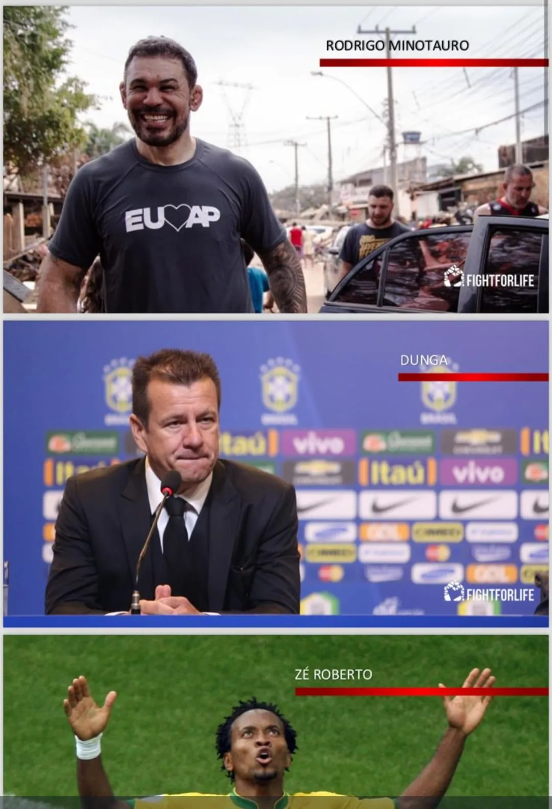 Os atletas Rodrigo Minotauro, Dunga e Zé Roberto são três dos envolvidos no Fight For Life. Imagem: acervo da equipe do projeto.