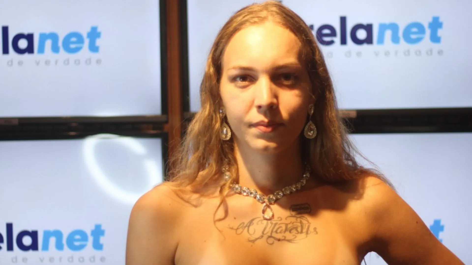 Enquanto se apresentava na mesa-redonda, a travesti subiu na bancada e, protagonizando uma dança erótica, cantou:
