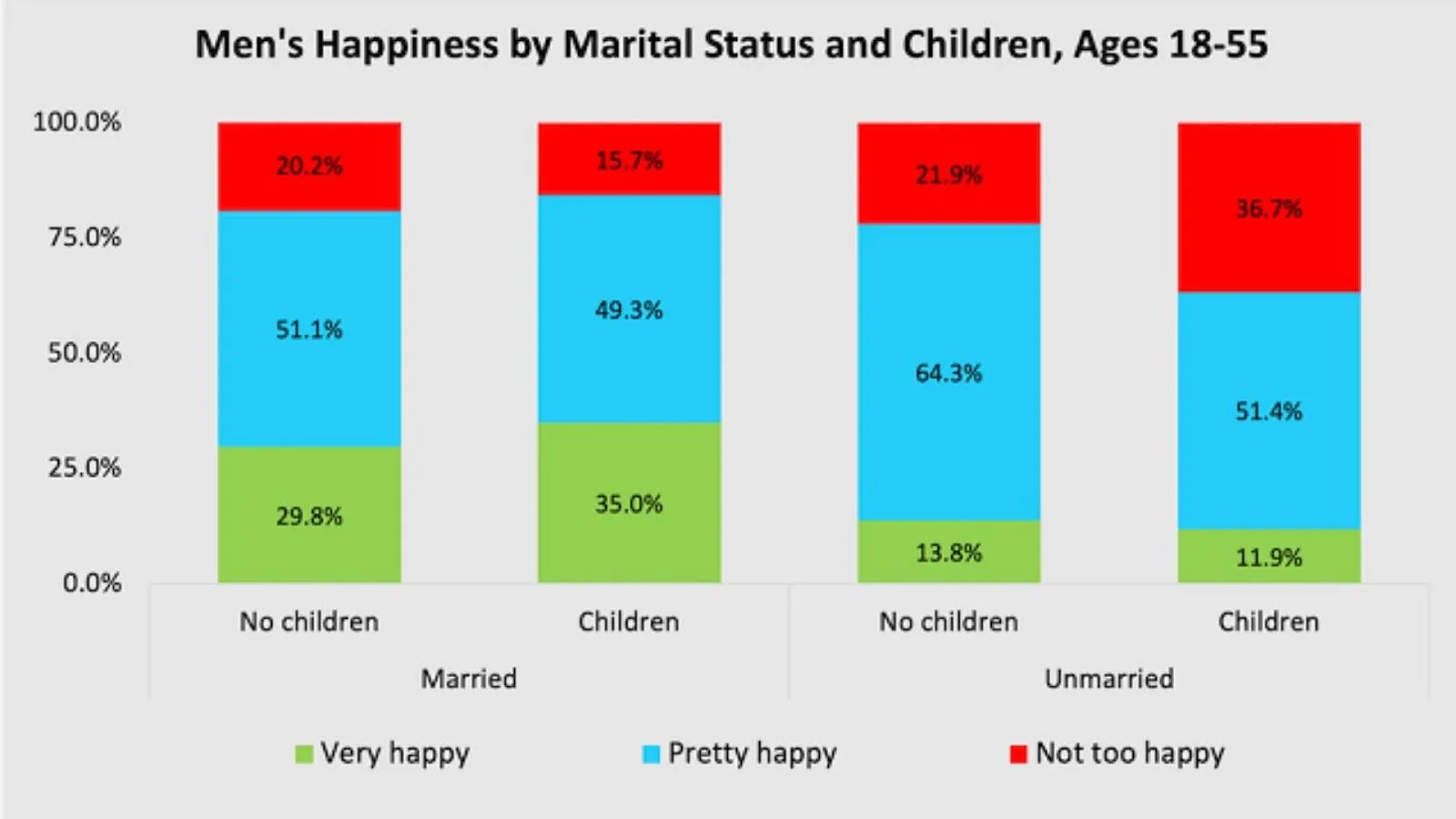 Aproximadamente 35% dos homens entre 18 e 55 anos que têm esposa e filhos afirmaram estar "muito felizes".
