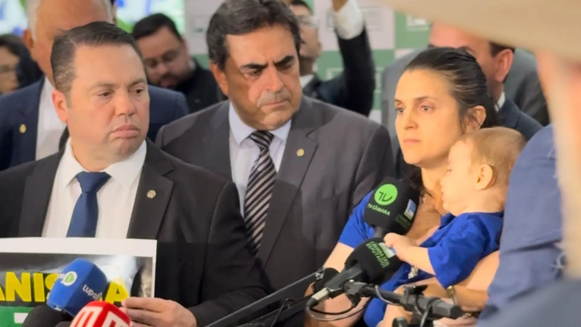 Enquanto aguardavam para serem recebidos por Hugo Motta, parlamentares favoráveis ao PL da Anistia apresentaram Vanessa e seus seis filhos ao presidente do Republicanos, deputado federal Marcos Pereira.