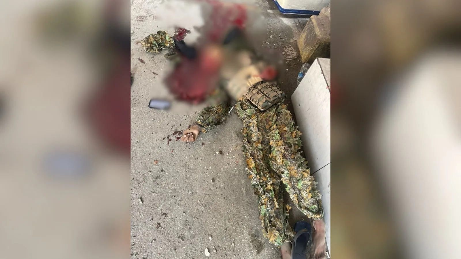 O morto vestia roupa camuflada e colete tático com compartimentos para carregadores de fuzil, sinal de que participava diretamente dos confrontos armados.