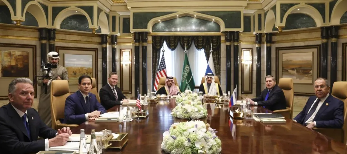 Encontro na Arábia Saudita marca primeiro passo diplomático entre Washington e Moscou pela paz.