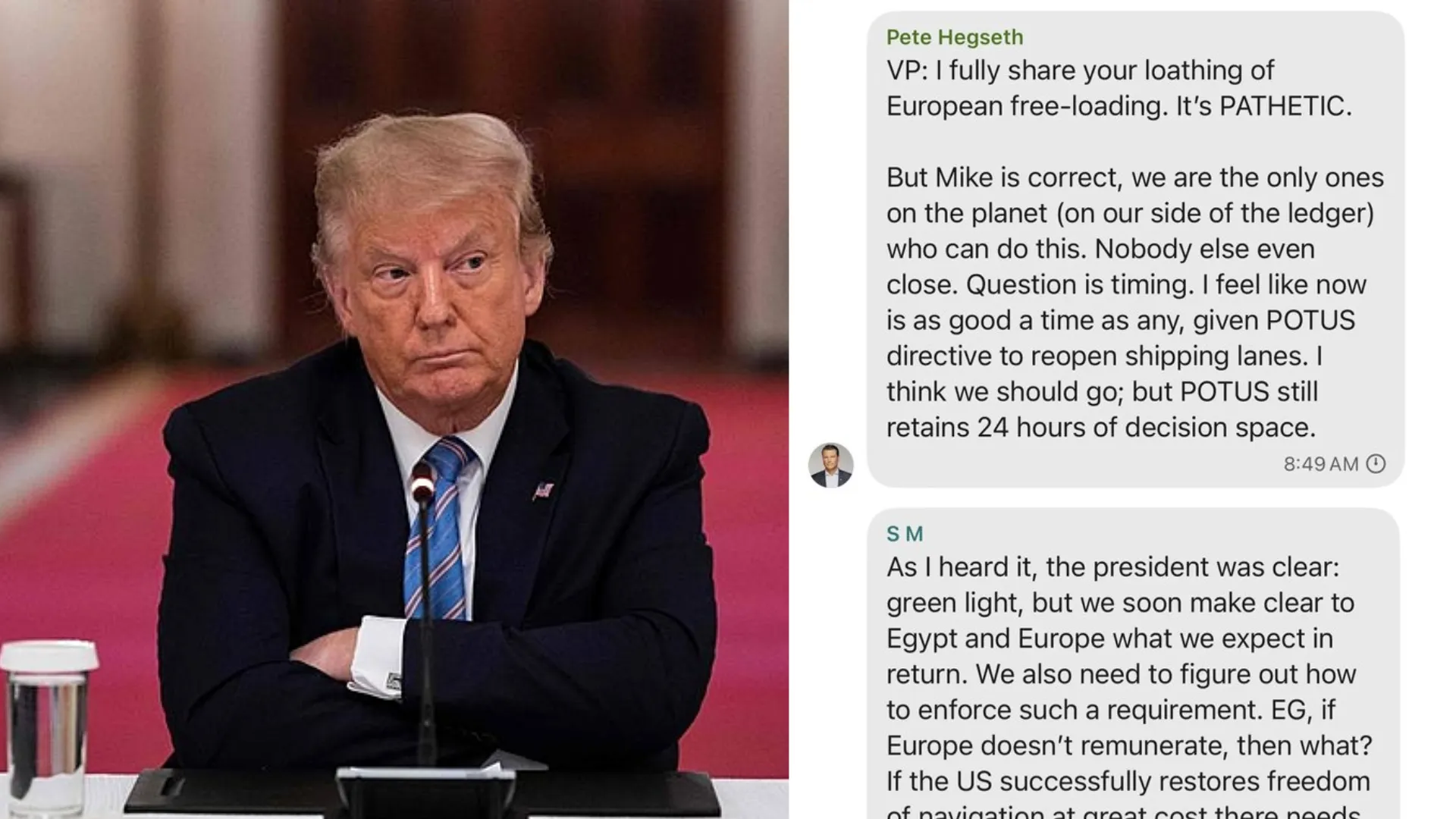 Pete Hegseth, Secretário de Defesa dos Estados Unidos chamou a situação de "patética", conforme transcrições oficiais. As mensagens indicaram a data exata do ataque, executado dois dias depois, matando dezenas de líderes houthis, segundo declarações do governo.