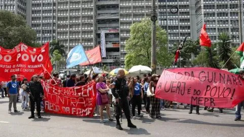 Deputado Glauber Braga (PSOL) é conduzido à delegacia em manifestação de estudantes na Universidade do Estado do Rio de Janeiro