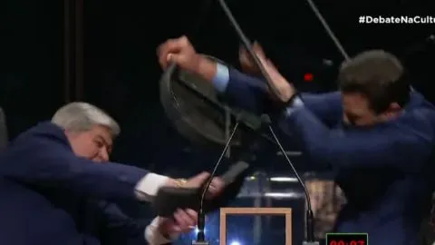 Datena dá cadeirada em Pablo Marçal durante debate na TV Cultura. Veja o vídeo